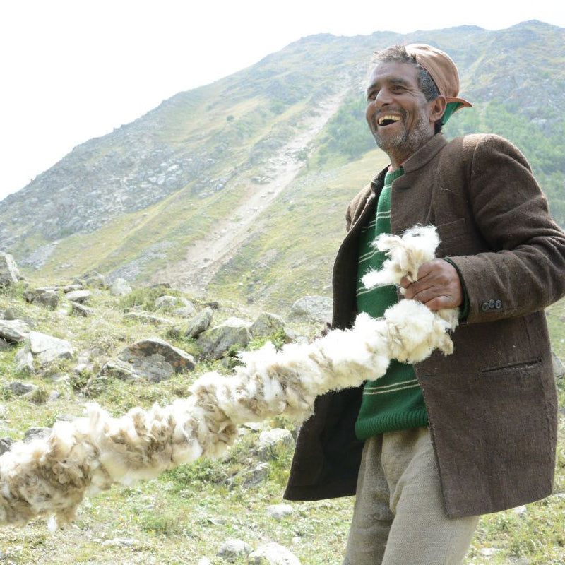 The wool is from The Sangla Valley in the Himalayan high valleys bordering Tibet in which organically certified flocks of sheep are kept. Sheep keepers and shepherds have been trained here for over 2 years and certification has been carried out. Today they can boast of being the first in India to produce certified organic virgin sheep's wool.